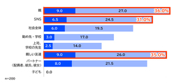 たり、日常的に話題にしたい相手のトップ3は、「親」(36.0%)、「親しい友達」(35.0%)、「SNS」(31.0%)。