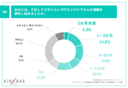 株式会社キッカケクリエイション (本社:東京都渋谷区、代表取締役:川島 我生斗)は、ITエンジニアからの退職を経験したことがある方438名を対象に、ITエンジニアの退職決意の瞬間に関する実態調査を実施しましたので、お知らせいたします。