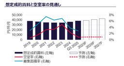 ・ 2027年までに竣工が予定されている新規供給の約半分が「京橋・八重洲・日本橋」及び「渋谷」の高賃料帯のサブマーケットに集中している。マーケット全体の賃料の上昇率はやや鈍化傾向にあるものの、想定成約賃料は、2027年まで平均年5%程度の上昇を見込む。