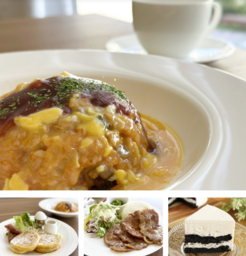 モーニング・定食・ピザ・パスタ等のランチ、ディナーにデザートのケーキまで充実しています。