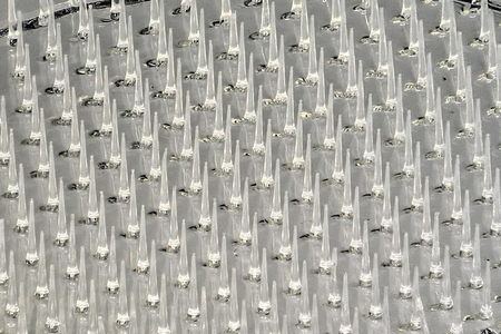 医薬品用マイクロニードルは穿刺により、有効成分を含む針を皮膚の表皮、真皮に到達させますが、化粧品用マイクロニードルは針が角質層に留まらなければいけません。この条件において、まったく新しい形状とサイズの化粧品用マイクロニードル設計が「富士山ニードル」です。