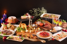 本日の前菜 / サラダバー / パテ ド プーレ / カリフラワーのムース ジャルディニエール / サーモンのロースト 山椒風味のソースヴァンブラン / 骨付き照り焼きチキン / 本日のパスタ2種 / 本日のピザ / 南仏風和牛ビーフシチュー / ホテルメイドカレー / フルーツ / ブッシュドノエル / シュトーレン / カシスオランジュ / フラン オ ショコラ / アイス各種 / ソフトクリーム etc.