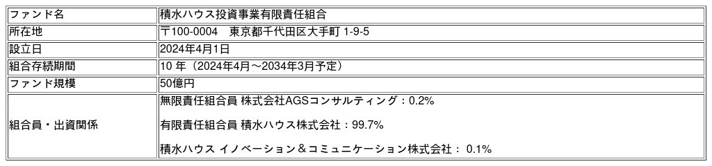 コーポレート・ベンチャー・キャピタル・ファンド設立に関するリリース:https://www.sekisuihouse.co.jp/company/topics/topics_2024/20240401/