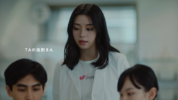 今回の新CMでは、池田エライザさん演じるティーチング・アシスタント(TA※)の池田さんと、山時聡真さん演じる大学生、山時くんとの大学での日常的なやり取りを描いています。池田さんは、大学での実験・実習をサポートするTAとして登場し、J-POWERの魅力をさりげなく語る存在。彼女は白衣の下にJ-POWERのロゴ入りTシャツを着用し、デスクには水力・火力・風力といった発電設備のアクリルスタンドを飾るなど、J-POWERへの深い愛着を持っています。そんな池田さんとの交流を通じて、山時くんは次第にJ-POWERに興味を持ち、その魅力に気づいていくというストーリーです。