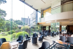 お食事の余韻をそのままに、御膳を召し上がった後は、庭園を望む「ラウンジ アゼリア」へ。名勝庭園を眺めながら、ゆったりとしたティータイムをお楽しみいただけるプランです。