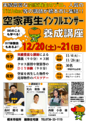 橋本市内で空家活用を促進するため、インフルエンサーとして活躍する講師による講 座、DIY体験会、成功事例の視察などを2日間かけて実施します。