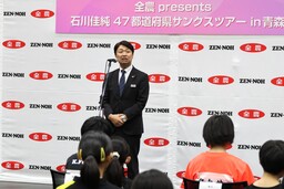 「石川佳純47都道府県サンクスツアー」(企画:IMG)は、石川さんが全国各地の方々との交流を通じて、卓球の魅力やスポーツの楽しさを伝えることを目的として企画されたもので、令和4年4月にスタートしました。本イベントは今回で44回目の開催となり、全農主催は10月に開催された三重教室に続き12回目となりました。世界の舞台で戦ってきた石川さんがご自身の経験をもとに、トークショーや実技指導を通して健康で強い心と体を持つ選手になるために重要な「心技体」について青森県の子どもたちに伝えました。