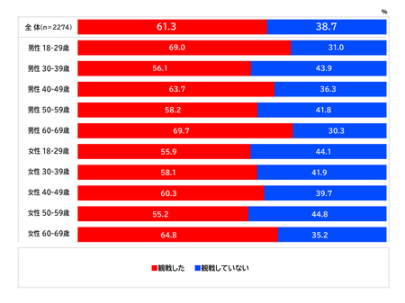 ② 東京2025世界陸上の観戦経験者は61.3%で、性別・年代を超えた幅広い層が観戦。