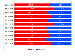 ● 東京2025世界陸上の観戦経験者は61.3%で、特に18-29歳と60-69歳の男性の観戦率が高い。