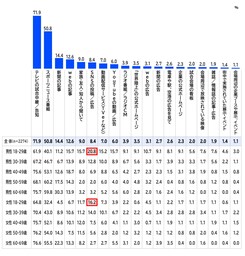 ● 「新聞の記事」14.4%、「Webの記事」12.6%なども、一定数の接触が見られた。18-29歳の若者世代
