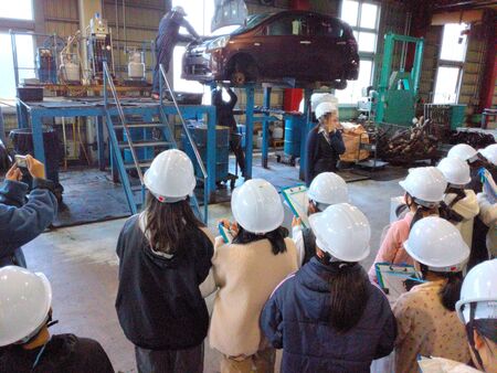 見学を終えた参加者からは、「普通乗用車だけでなく、バスやトラックもリサイクルされているのか」といった質問や、「たくさんの機械の使い方を聞いているうちにどんどんおもしろくなった。いい体験になった」などの感想が聞かれました。