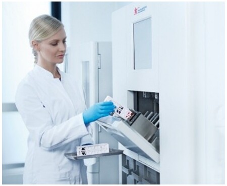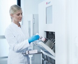 このたび発売するa120は、病理標本作製における「包埋(ほうまい)」の工程を連続自動処理できる装置です。包埋は、組織検体を薄く切る工程(薄切)の準備として、組織をパラフィン中に埋め固めてブロックを作る工程です。これまで包埋作業は、一つひとつのブロックを手作業で作る必要がありました。a120では、この包埋作業を自動化することにより、1時間あたり最大120ブロックを作製することが可能です。また、カセットの周りに付着したパラフィンを落とす「バリ取り」と呼ばれる作業も不要となり、作業負担をさらに軽減します。連続自動処理による作業効率化に加え、安定した品質のブロックを作製することができます。a120は検体を固定することのできる「ティシュー・テック® パラフォーム セクショナブルカセットシステム」と組み合わせて使用することで、検体紛失のリスク低減にもつなげることができます。