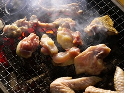 同じく町内で生産された土佐備長炭を火起こしして、「もも」「むね」「ぼんじり」「せせり」などに手際よく捌かれた地鶏をBBQで頂く。大人ふたりで食べるのに十分な量だ。