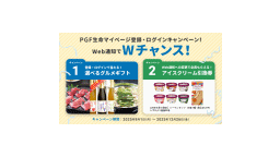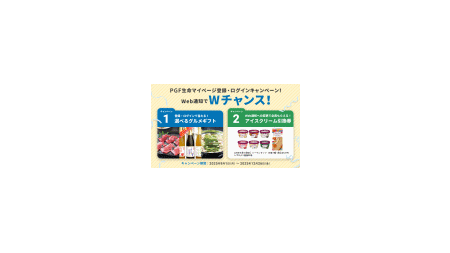 P GF生命マイページへの新規登録またはログインで総計1,000名様に選べるグルメギフトのプレゼントや「Web通知」への変更でアイスクリーム引換券をもれなくプレゼントするキャンペーンを開催中です。