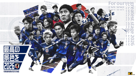 SAMURAI BLUE (日本代表)は「最高の景色を2026 FOR OUR GREATEST STAGE」を合言葉に、8大会連続8度目の本大会に向けて新たな一歩を踏み出しています。「最高の景色」は、SAMURAI BLUEが目指す”世界の頂”からの眺望。日本のあらゆる場所でみんなが喜び合い、笑顔が溢れている光景もこの言葉に込めています。そして、それはSAMURAI BLUEだけが望む景色ではなく、全ての人たちと望む景色でもあるとして、” OUR GREATEST STAGE”としています。
