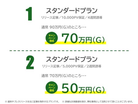 通常価格 90万円(グロス) → キャンペーン価格 70万円(グロス)