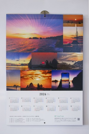 各月に一枚ずつ季節感にあふれた受賞作品を掲載していますが、中にはコンテストの夕陽部門で特選・入選・佳作を獲得した複数の作品と1年分のカレンダーで構成した、通年で飾れるページも掲載。