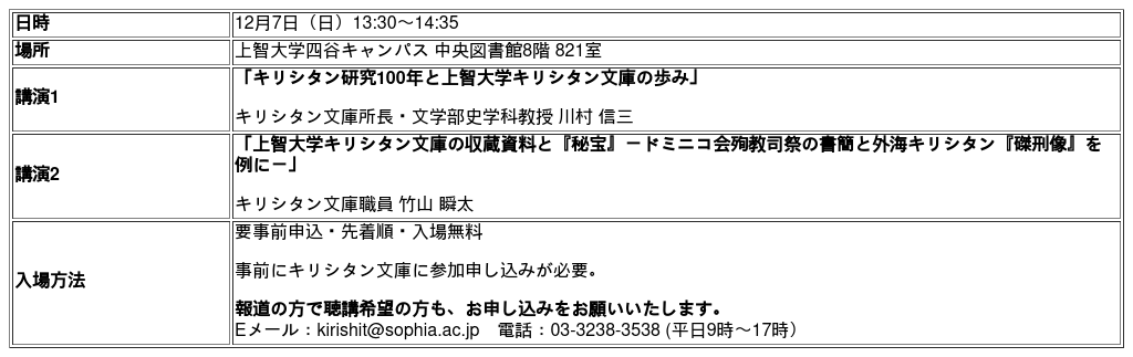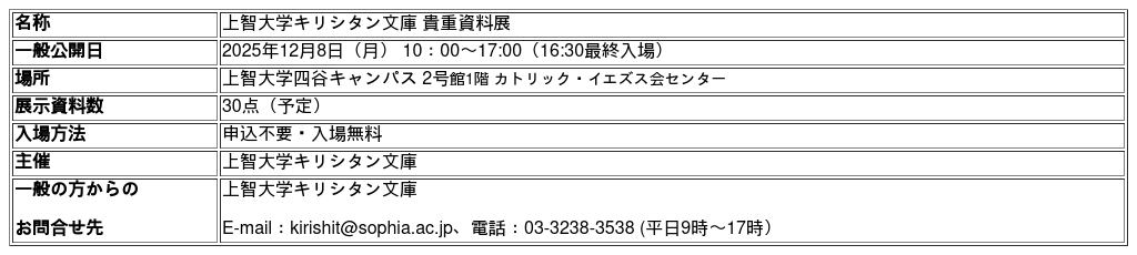上智大学(では、特別展「上智大学キリシタン文庫 貴重資料展」を12月8日(月)に開催します。