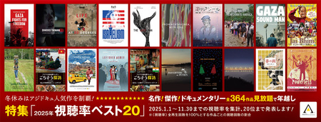 ドキュメンタリー映画専門の動画配信サービス「アジアンドキュメンタリーズ(https://asiandocs.co.jp/)」(運営:株式会社アジアンドキュメンタリーズ 東京都中央区/代表取締役社長 伴野智)は、2025年のアジアンドキュメンタリーズ配信作品から視聴率上位20作を発表します。
