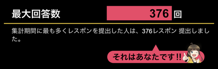 全国で最も多く提出した学生は 376件 提出していました。 春学期(前期)だけで、これほど多数のカードを提出している学生がいたことは驚きでした。