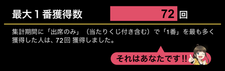 この2種の出席カードで、全国でもっとも多く1番を獲得した学生は 72回 獲得していました。