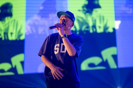 「素晴らしいアクトに出ていただいて、素晴らしい会になりました。お客さんの中には35年前から来てくれてる人もいるんでしょ。この歳になると感謝しかないですよ」と言葉を述べるBose。デビュー35周年を迎えた今年5月5日にリリースされた「ビート道」を披露し、スチャダラパーの過去と現在をしっかりとつなげていった。