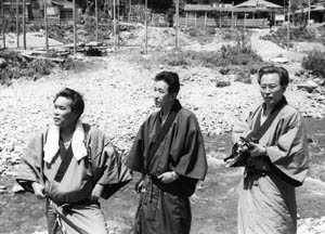 左から作詞家の藤田まさと、門田ゆたか、野村俊夫